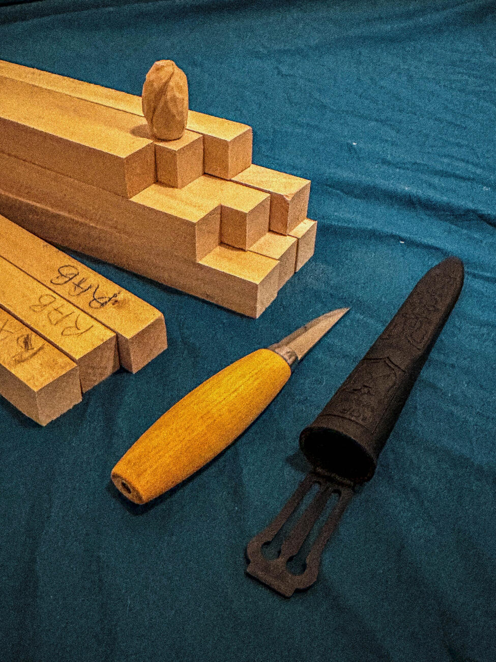 L'idée de ce projet est d’apprendre la sculpture sur bois en m’attaquant à un de mes jeux favoris. Je rêve de pouvoir jouer avec des pièces originales et faites main — alors pourquoi pas les miennes ?